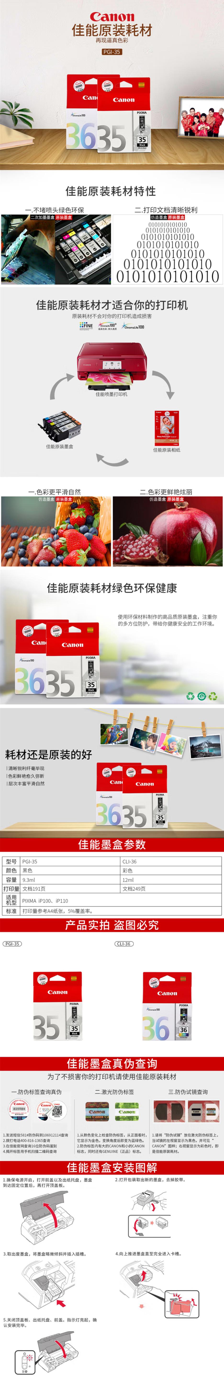 佳能(Canon)PGI-35黑色墨盒适用PIXMA iP100 iP110