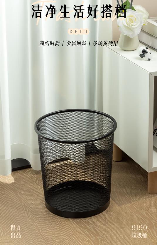 得力(deli) φ26.6cm中号金属网状圆纸篓