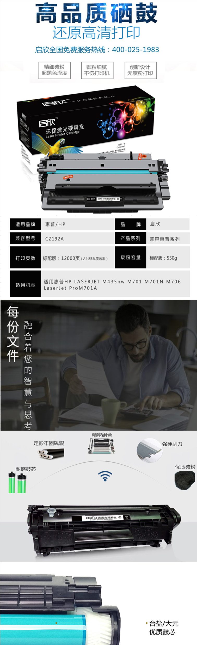 启欣 QX-CZ192A 环保激光黑色硒鼓 适用于惠普HP M435nw M701 M701N M706 LaserJet ProM701A 7516A 1支装