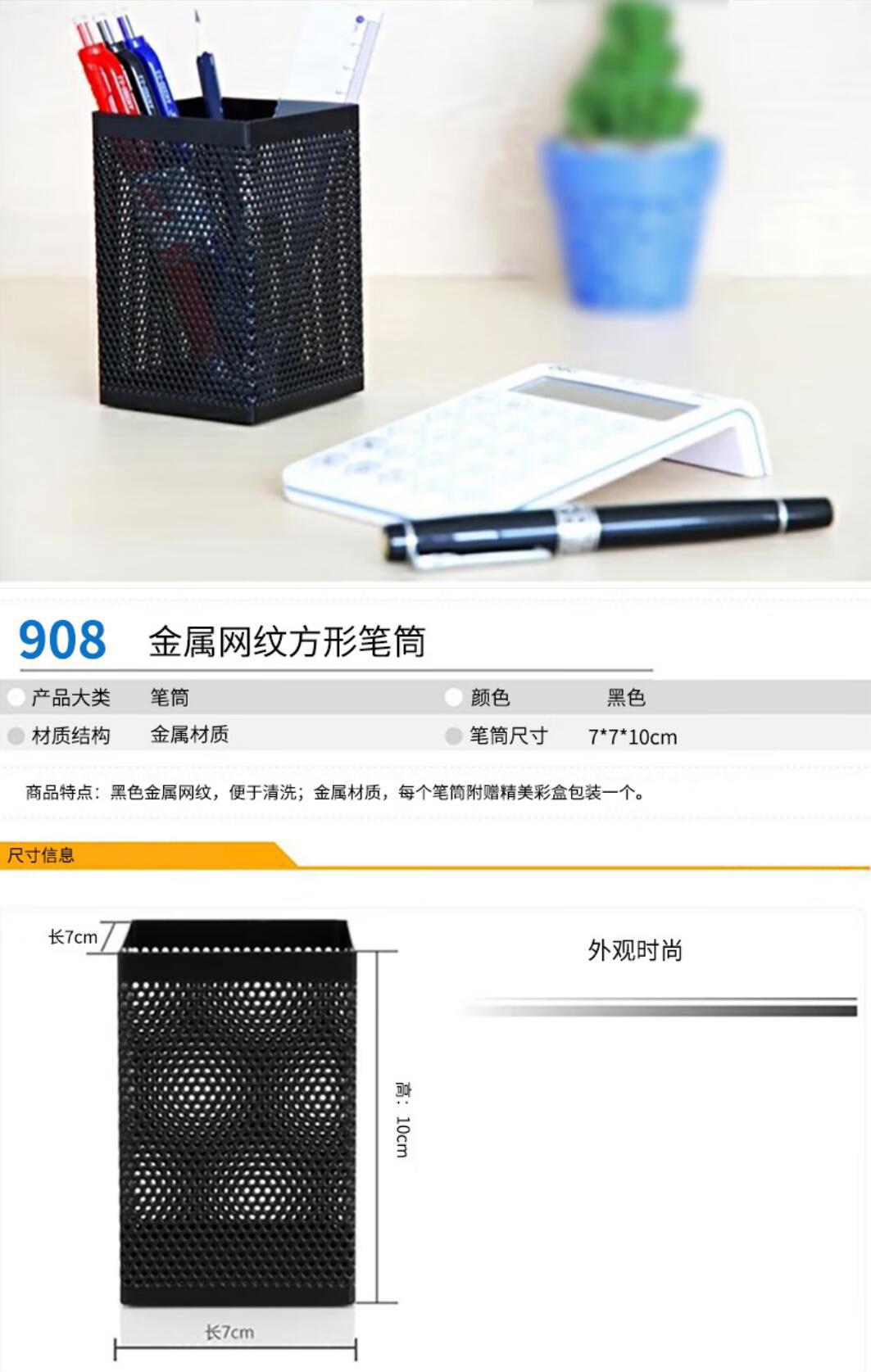 得力(deli)908 金属网纹笔筒 方形 办公文具 金属网格笔插 创意收纳摆件 办公用品 黑色 (单只)