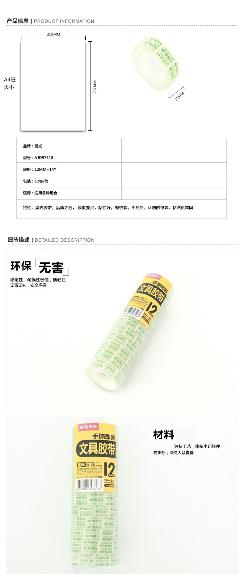得力(deli)高透明胶带小胶带易撕学生文具胶带办公用品 12mm*14y(12卷/筒装)AJD97318(满500元,免运费)