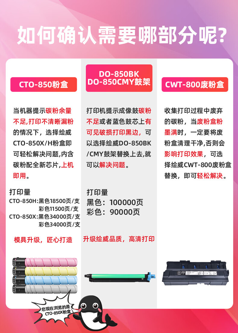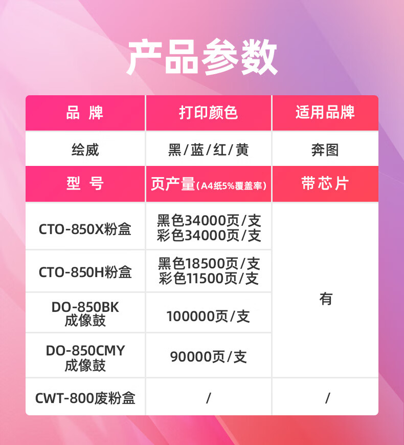 绘威CTO-850X黄色粉盒 适用奔图PANTUM CP9502DN CM8506DN CM8505DN复合机墨盒 碳粉 墨粉 墨粉盒
