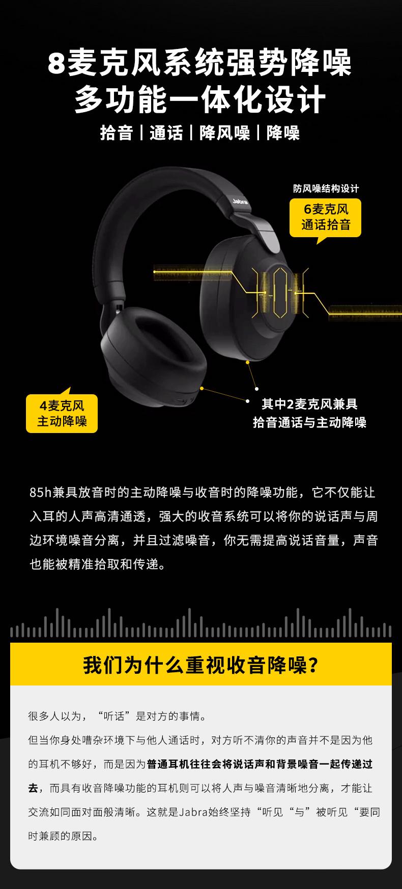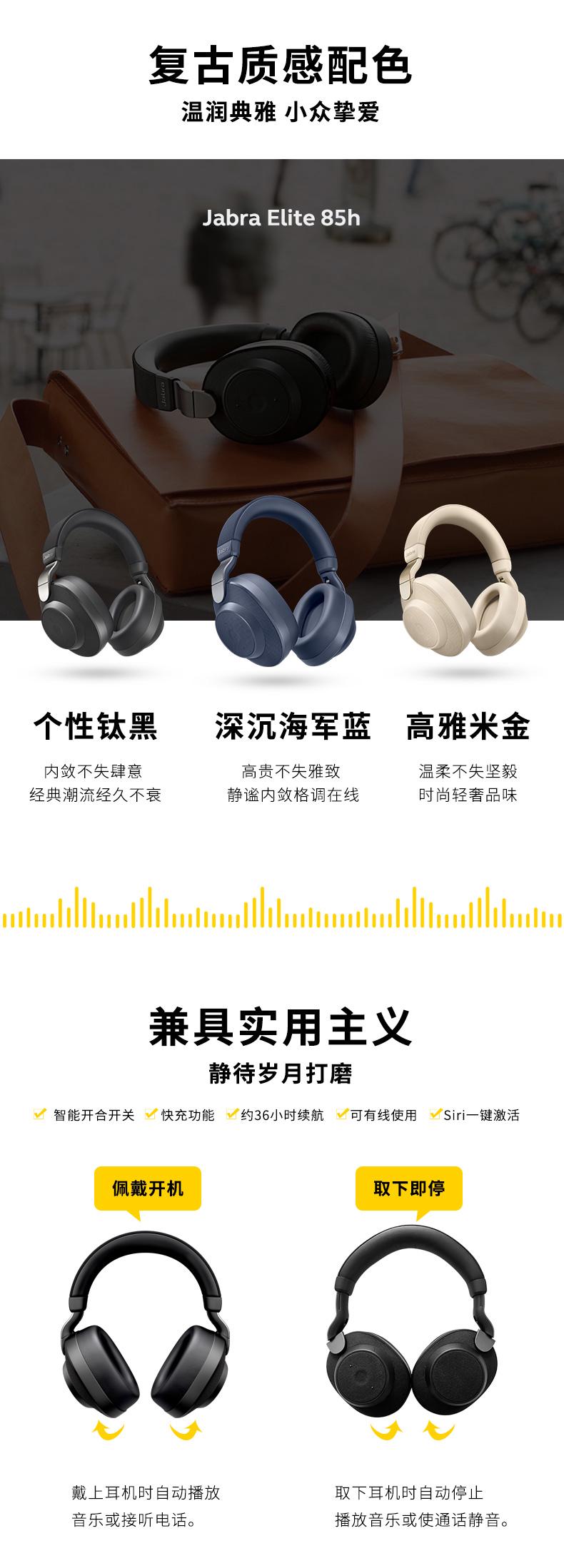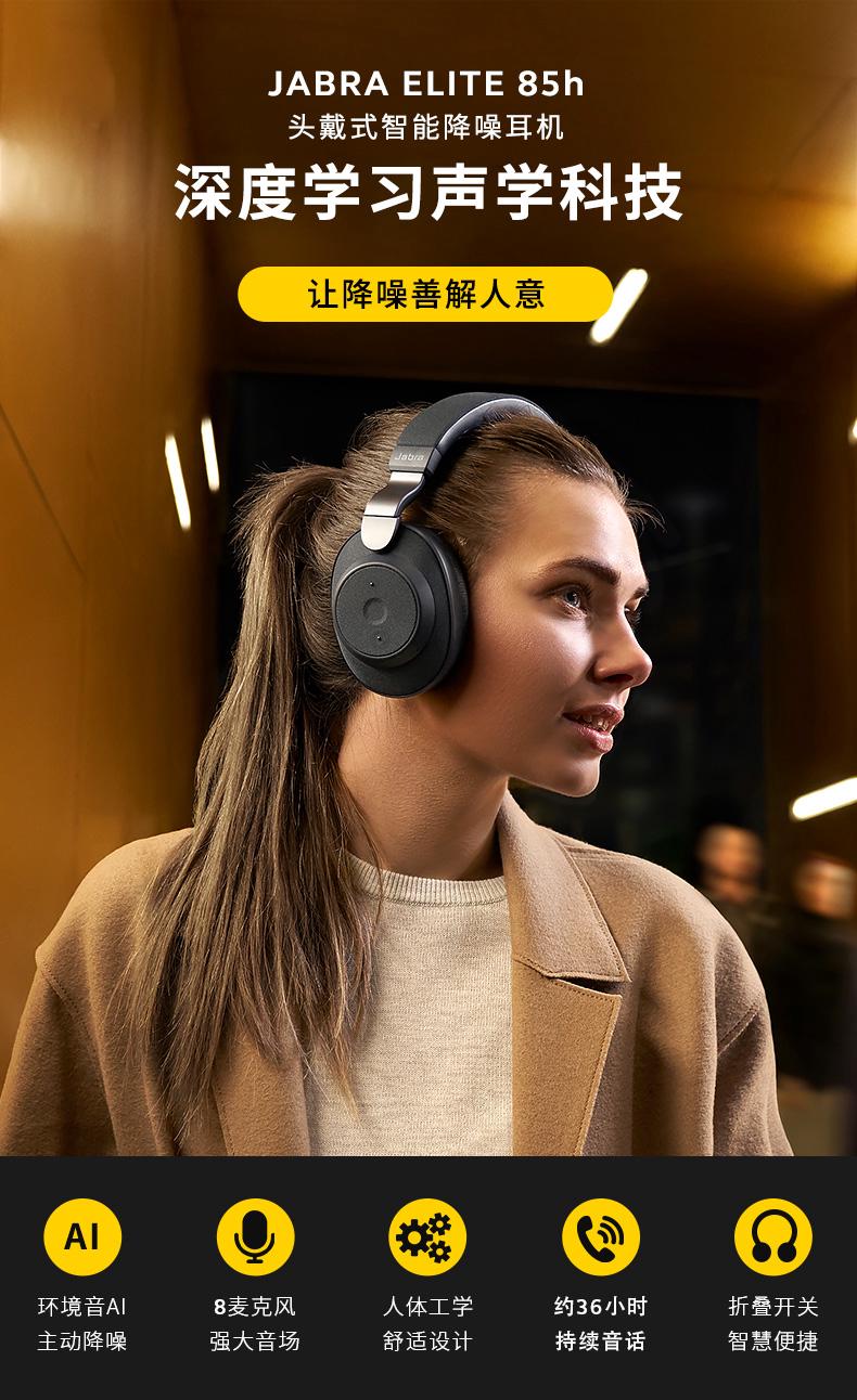 【】捷波朗JabraElite85h智能降噪蓝牙耳机手机耳机头戴式 游戏耳机耳麦 8麦克风超长续航 防尘防水耐用