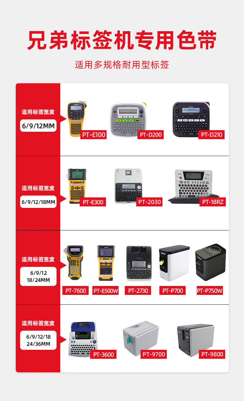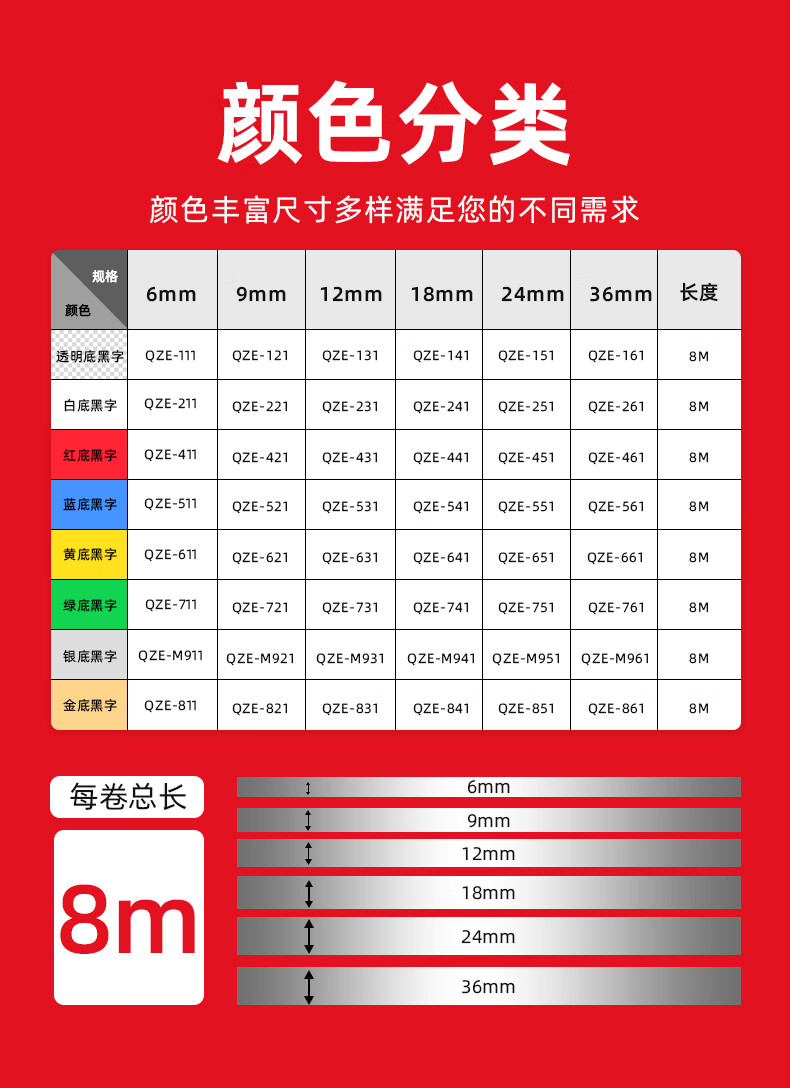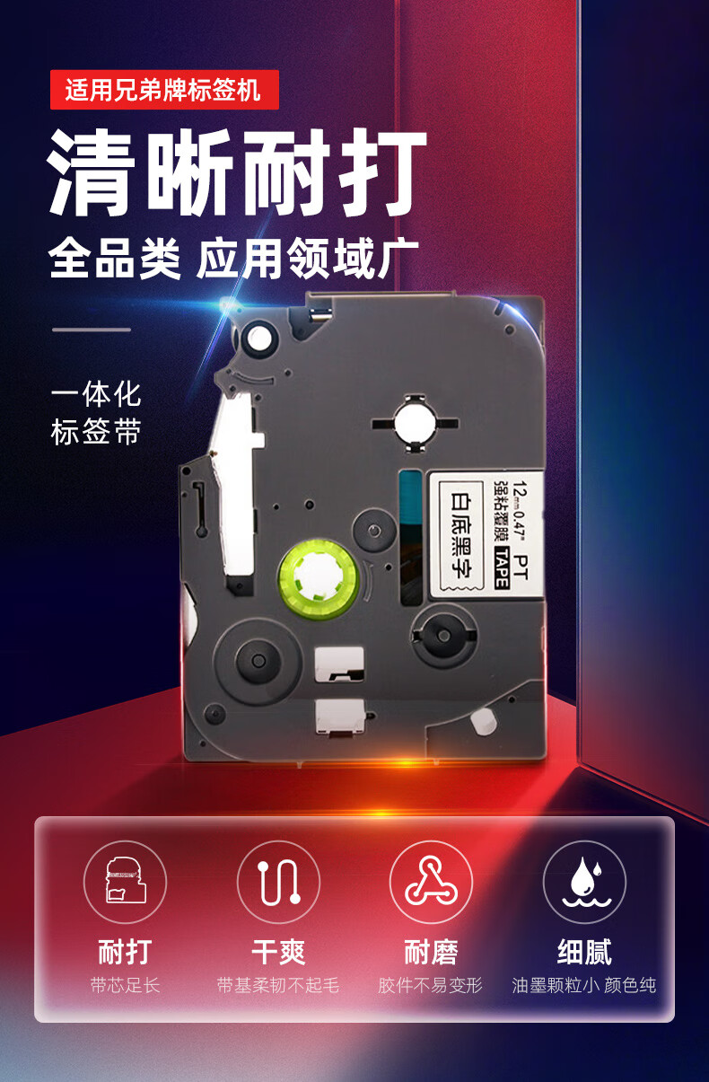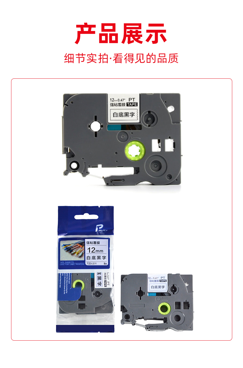 绘威 QZe-221标签色带 不干胶标签纸标签带覆膜标签 适用兄弟标签打印机 白底黑字9mm*8m