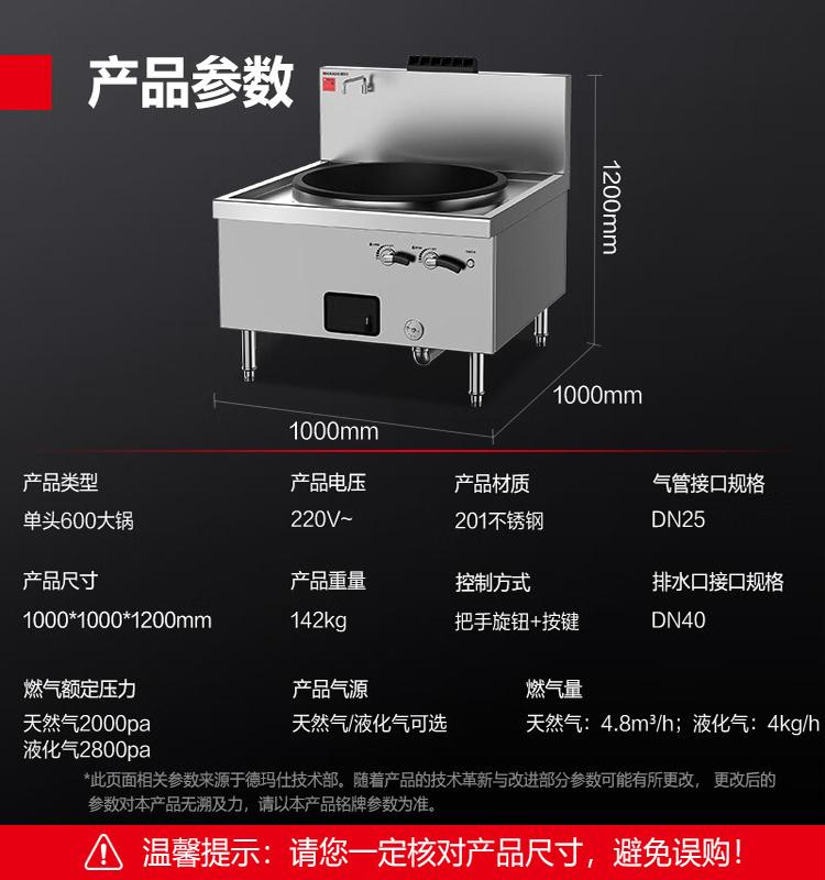 德玛仕(DEMASHI)商用燃气大锅灶 单位学校食堂电磁猛火灶GSDZ-Y60 60cm单头大炒锅(天然气/液化气)