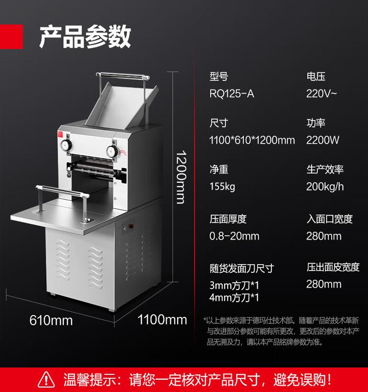 德玛仕DEMASHI 压面机商用 全自动面条机 拉面馒头饺子皮包子皮机 揉面机 【200KG/H】RQ125-A