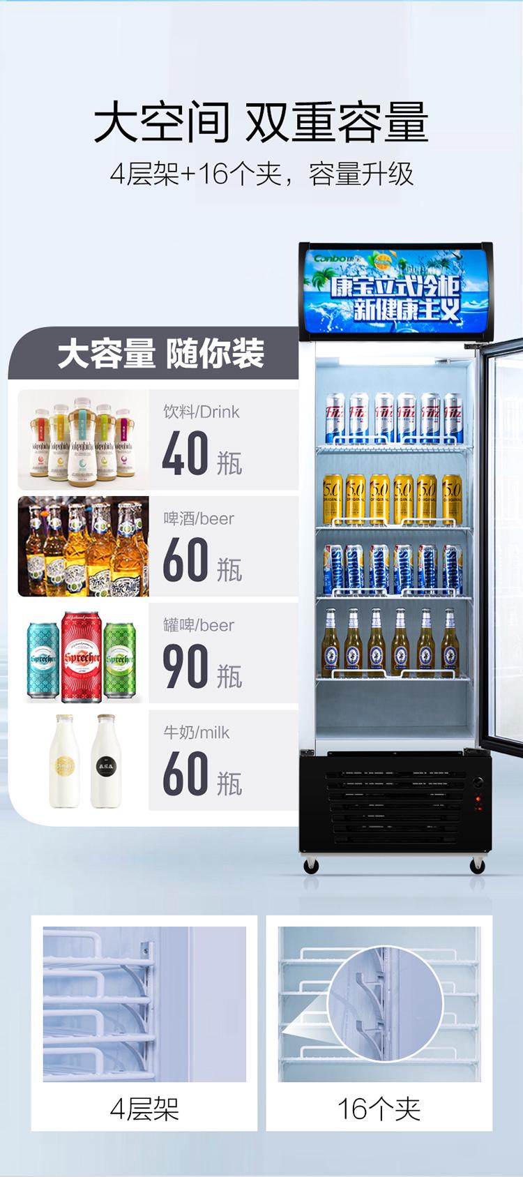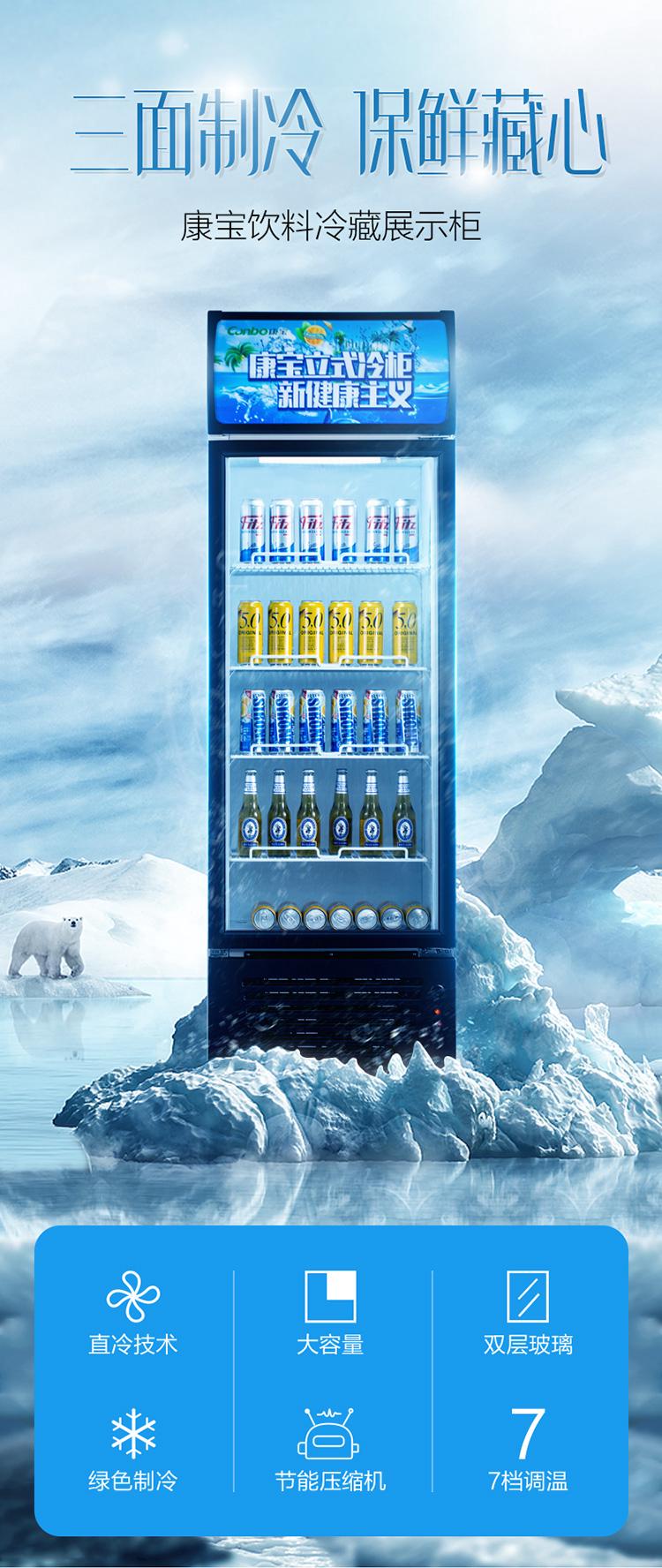 康宝冷藏展示柜保鲜柜啤酒柜商用冰柜超市单门立式水果饮料冰箱