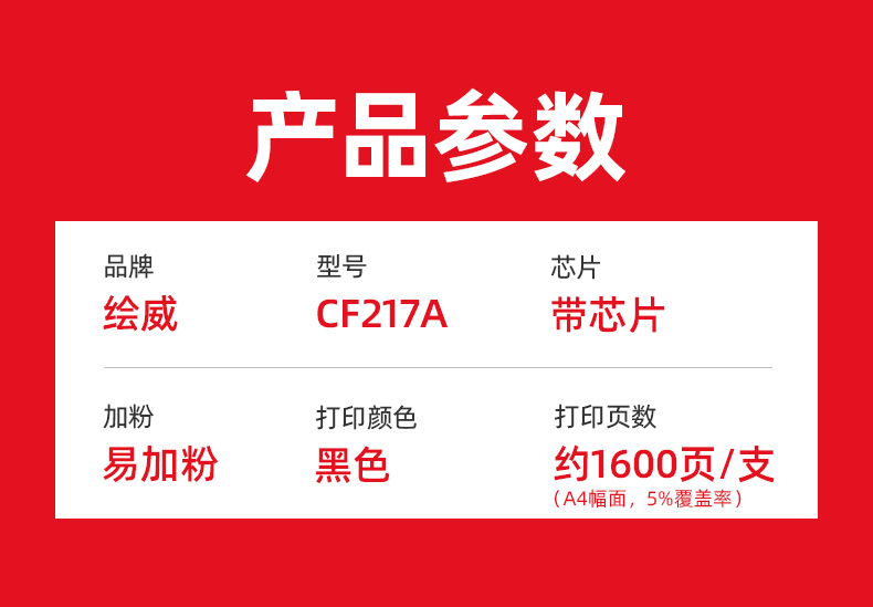 绘威CF217A 17A易加粉粉盒带芯片 适用惠普HP M102a M102w M130a M130fn M130fw M130nw硒鼓 墨盒 碳粉盒