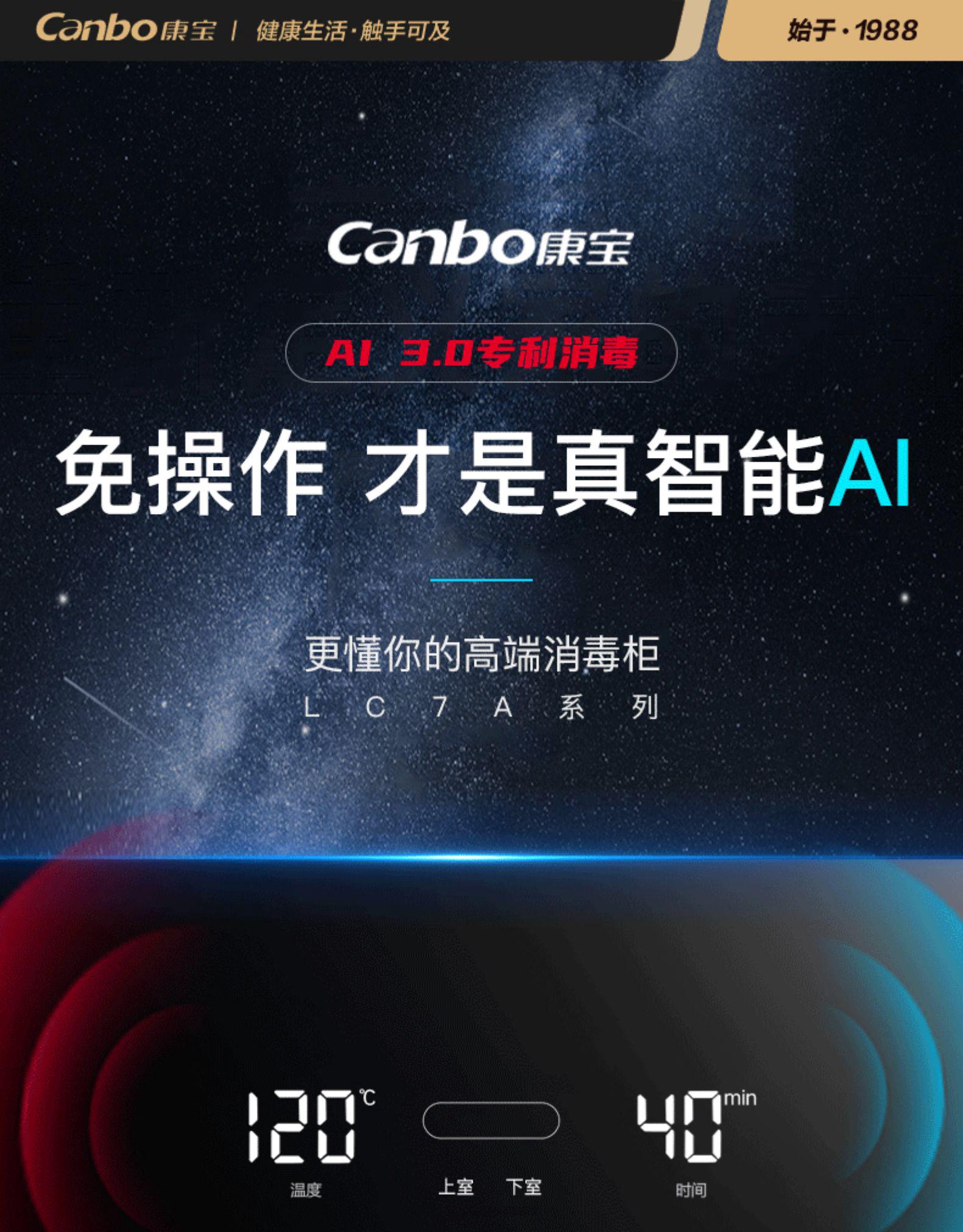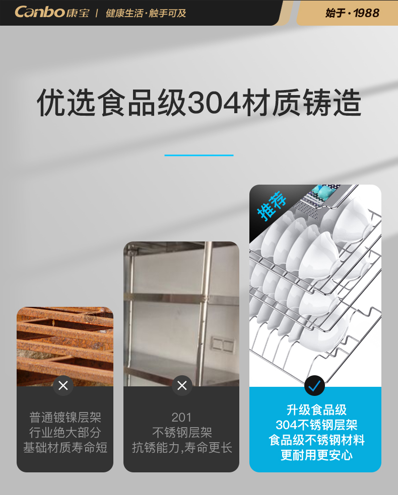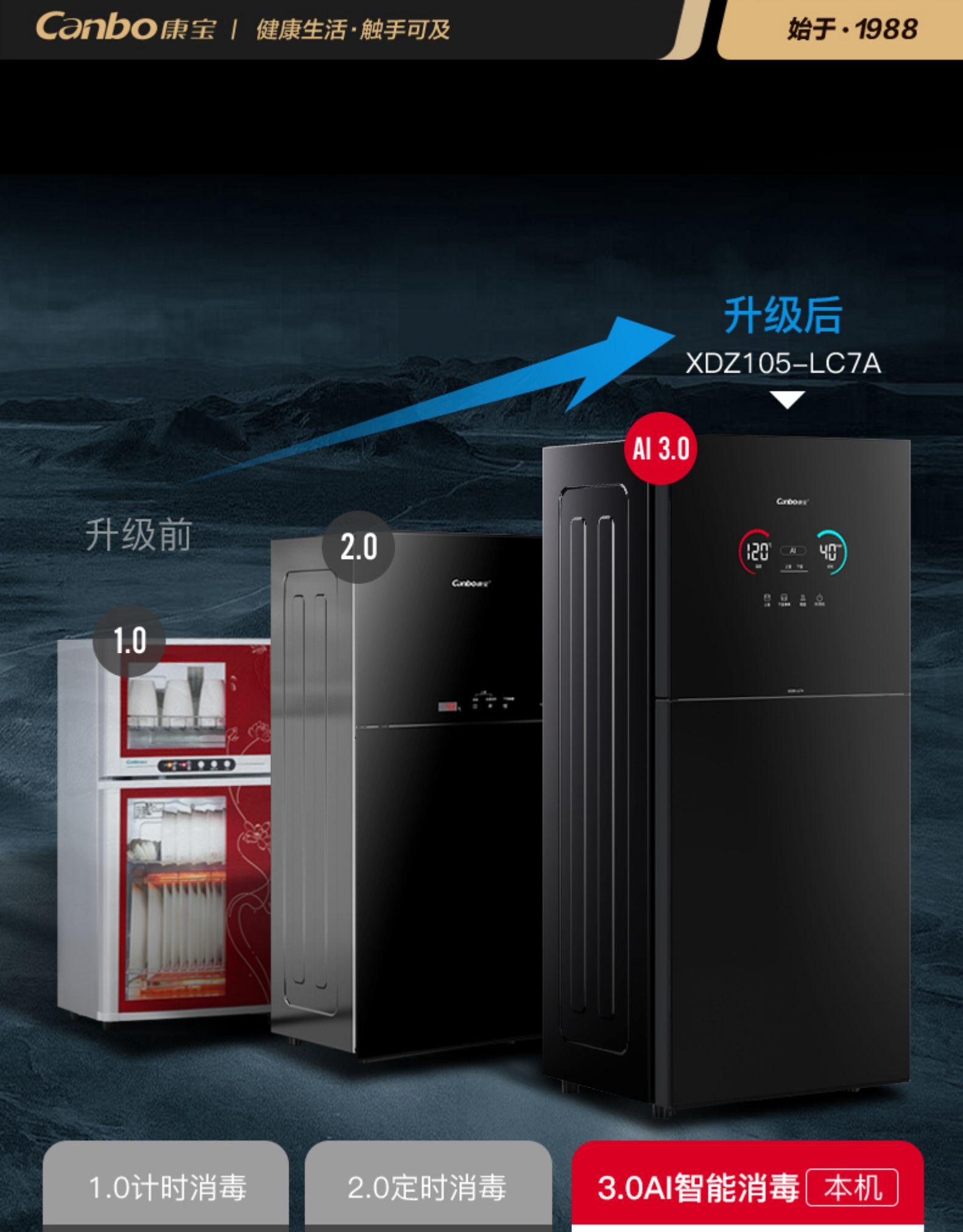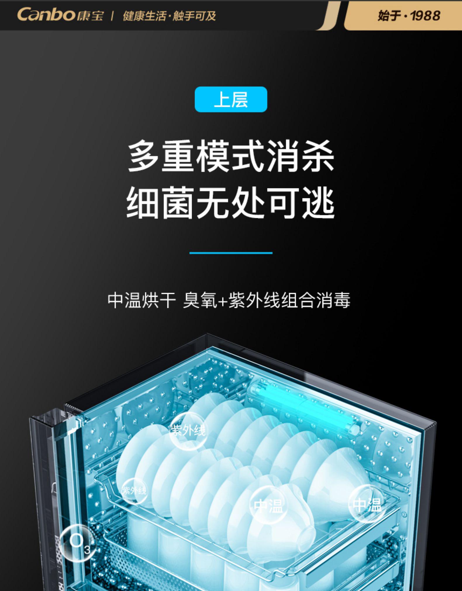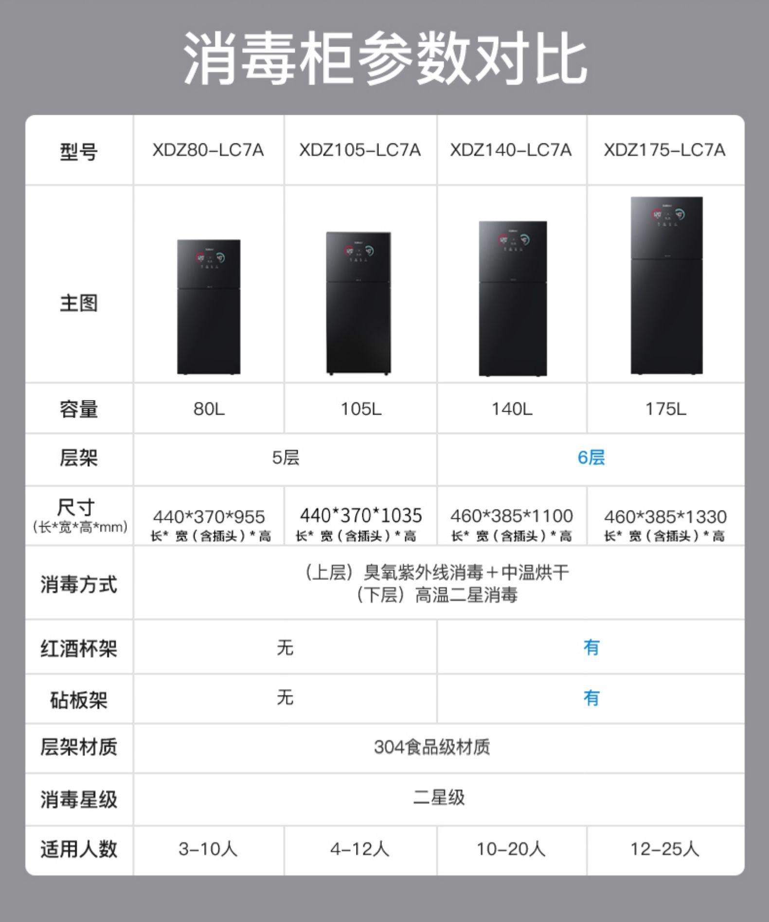 Canbo/康宝LC7A二星消毒柜家用立式厨房高温碗筷碟杯刀具304不锈钢碗柜