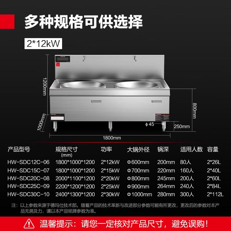 德玛仕(DEMASHI)大功率商用电磁炉 电磁大锅灶 学校食堂酒店厨房设备 12kw双头电磁电灶台HW-SDC12C-06(201材质)不含安装