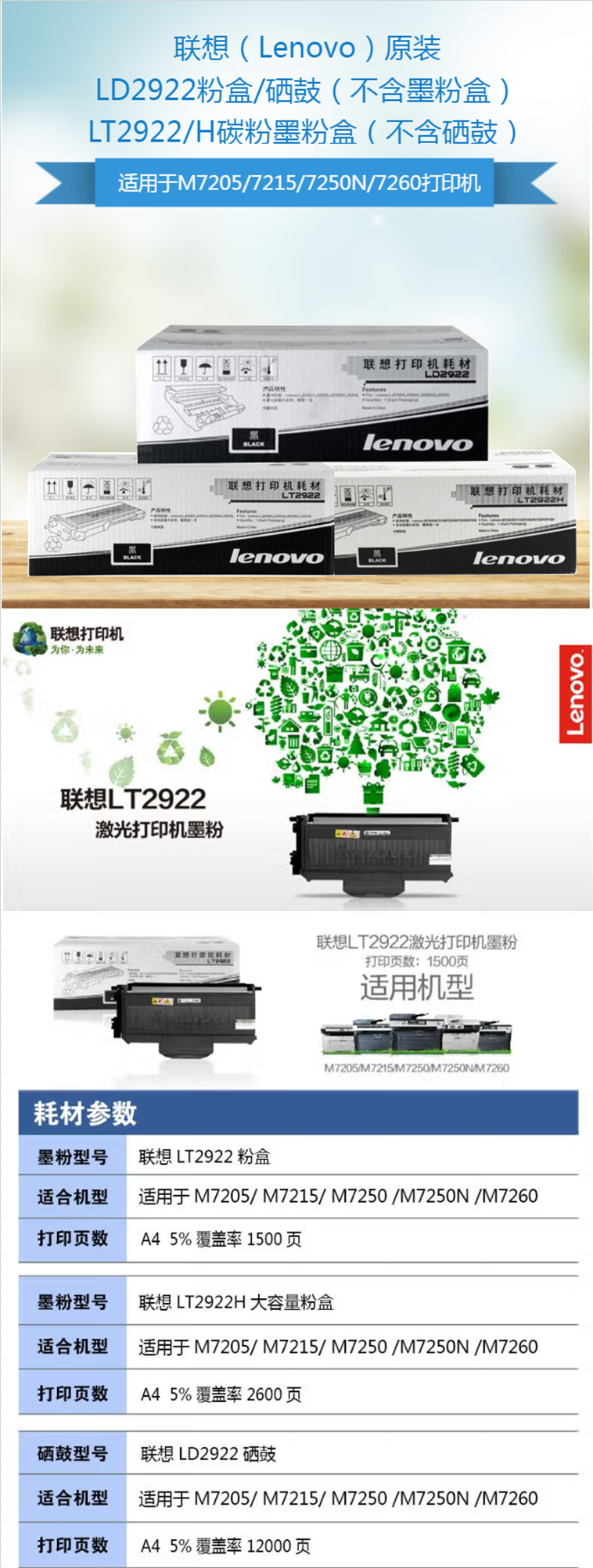 联想(Lenovo)LT-2922墨粉 LT-2922(适用于M7205 7215 7250 7250N 7260打印机)