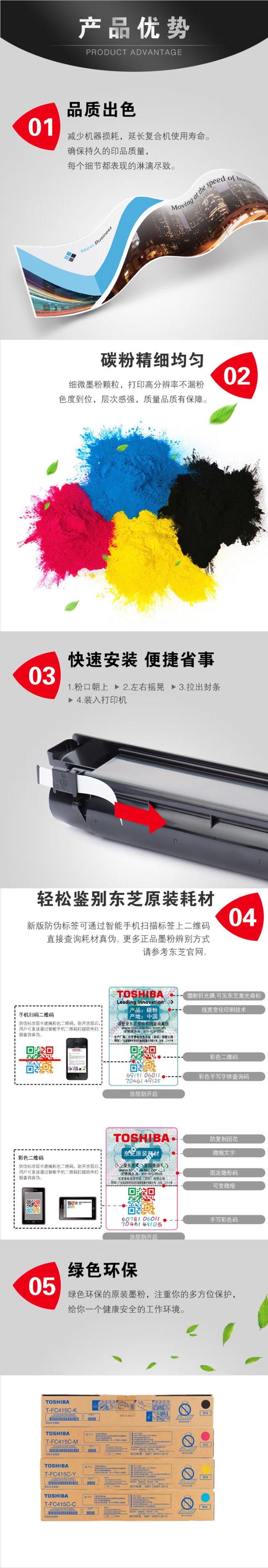 东芝/TOSHIBA T-FC415碳粉 黑色 适用机型:e-STUDIO2010AC、2510AC、2515AC、3015AC、3515AC 高容1套装(红+青+黄+黑)